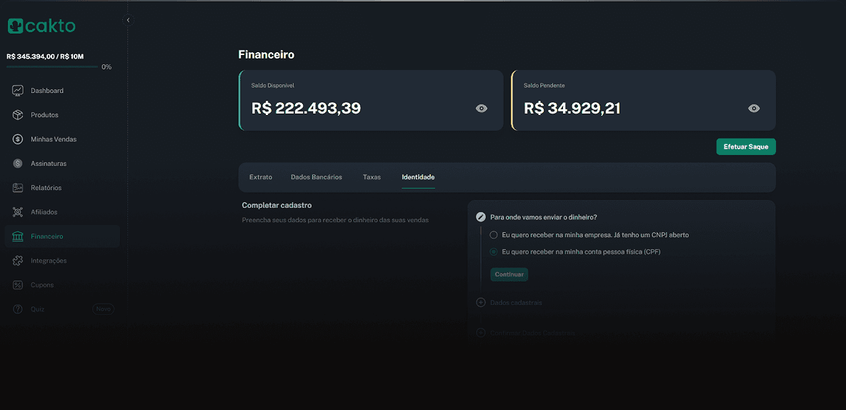 Na plataforma de pagamentos Cakto, você pode realizar saques via Pix todos os dias!