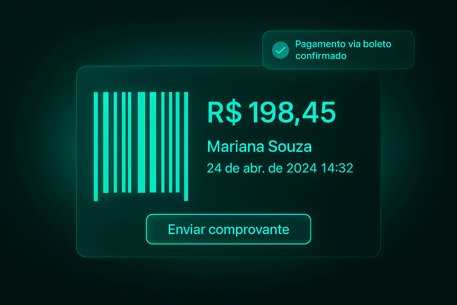 Ideal para quem prefere pagar diretamente em bancos, lotéricas ou pelo app do banco. O pagamento pode levar até 1 dia útil para ser compensado, e o pedido será processado após a confirmação.